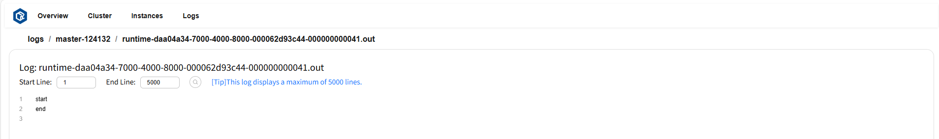 Logs 页面可以查看所有日志内容和错误信息。页面示例: