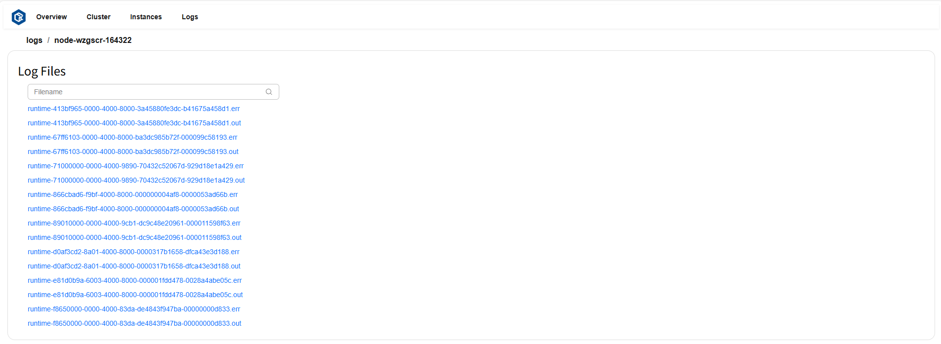 点击选中的节点,可查看该节点下所有日志文件列表。页面示例: